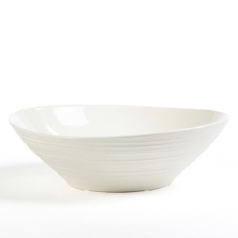 Clean lines rendered in a rustic, earthy pattern. Swirls rich, double-finish in white, smooth and glossy on the inside, and ribbed and matte on the outside, sets a striking and original table, especially when contrasted with a swirl in black and tan. The soft rib on the outside of the collection suggests a handmade look. Generous serving pieces and organic shapes make laying out any meal a treat for the host and guest alike. Artisan stoneware is handcrafted so glazing variations will occur creating an eye-catching and unique dinnerware with no two pieces ever exactly the same...../ Mikasa 8.9-in. Swirl Salad Serving Bowl, White. / Serving Bowls